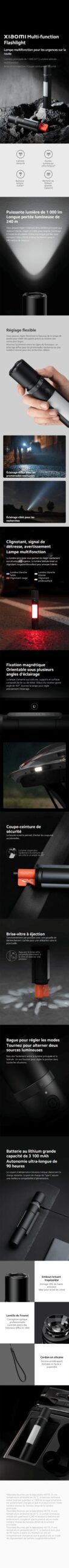 La lampe s’aimante aux voitures, supports et surfaces composés de fer ou de nickel. Grâce à la rotation grand angle de 107°